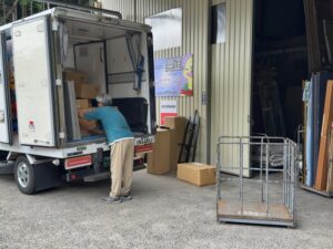 今日はTさんが九州の朝倉行きの為に12時出勤で、お客様の所へ商品を引取りに行ったんだけど、いつものトラックにアクシデントが。