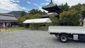 YさんとH君は嵯峨清凉寺様の撤去に行ってました。
