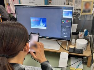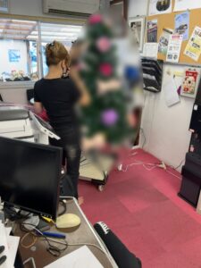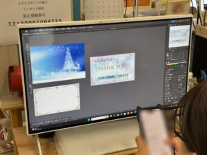 みんながツリーを作ってる間、OMさんはDM用の案内やサービス券?みたいなのをデザインして作ってたぁ!