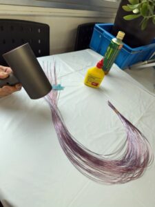 箱に詰めて発送するから曲線が潰れてしまわない様に水引を曲げたまま固定してました。
