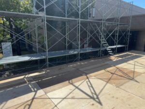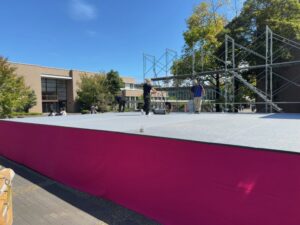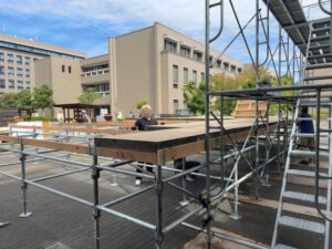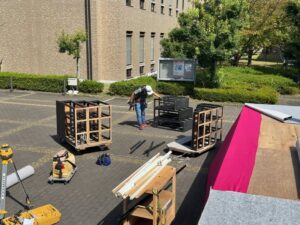 今日は、男子は全員 龍谷大学様へステージ設営に行ってました。