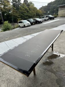 書道部さんの作品を掛けるパネルの表装だね。
