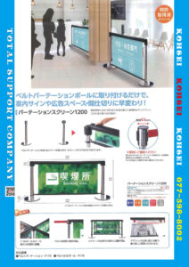 今回はこれかな。 ポールパーテションに取り付けるメディアです。よく列の誘導とか、簡易封鎖したりとか、そういう時に使われてるパーテションに後付け出来るメディアなんだ。