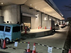 積み降ろしのプラットホームは大道具さんのトラックが止まってるので表通りで待機してたんだそうです。