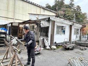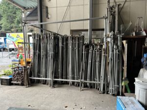 テントが終わってからは、この前の舞台の時に先方さんがアングルにテープを貼られて使っておられたみたいで、そのテープが取れないので付いたまま持ち帰ってきてた分のテープ除去を行ってはりました。