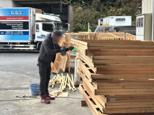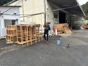 社長の龍谷大学様の資材なんだけど、もう使わないやろう~って事で放り出してきて解体しだしてました。