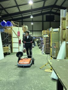 倉庫の後始末後はスィーパーで綺麗に床掃除ですね。