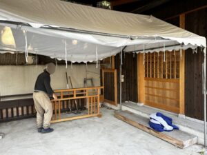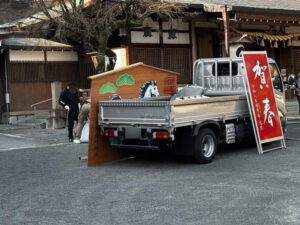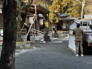 という事で小正月も終わったんで、神社の撤去にTさんと社長が向かわれた。