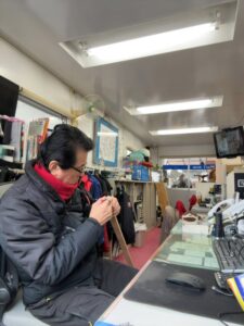 社長は新しい部材を作るそうで、その下準備?というか芯を取ってはりました。