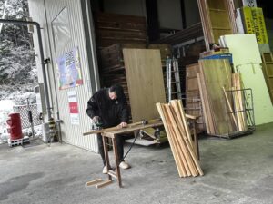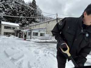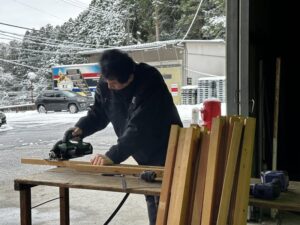 雪かきを終えて、寒い中 社長は作り物を始めました!