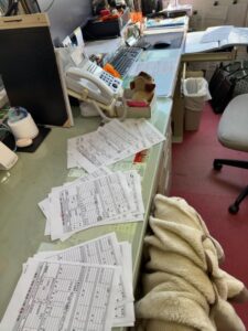 MMさんは帳簿を見てたみたい。社長のあげてた伝票はぜ~んぶ3月の仕事の分なんだって。
