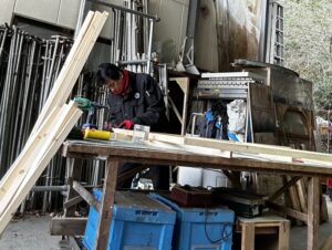 残りの4枚は吊看板なんだけどEVに乗る様に4分割にしたサイズでベースを作るそうです。
