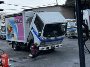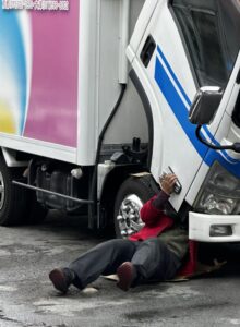 輸送部のNさんが戻ってきたトラックを何やら弄りだしてた。