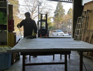 エレベーター内の壁の養生材としての物を作ってたんだそうだよ。