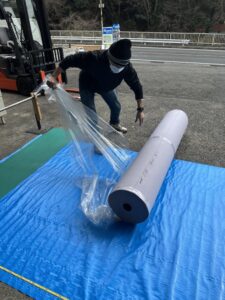 2人でゴロゴロ転がして何でも15mにカットして持って行くんだそうです。