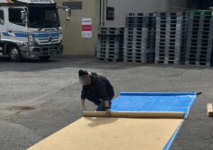 さてと、今日はH君が呼ばれてて朝から社長と一緒にカーペットの準備をしてたなぁ。