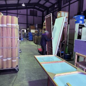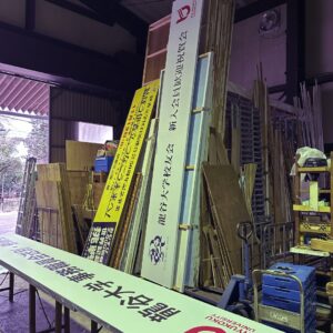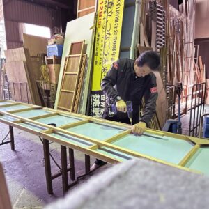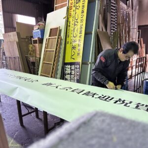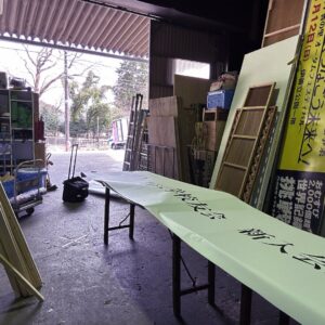 Tさんも倉庫の中で先週表具したパネルを整理したりしてたよ。