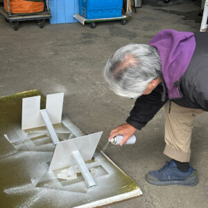 社長達が居ない時、会社ではTさんが研磨してたスタンドを塗装してました。