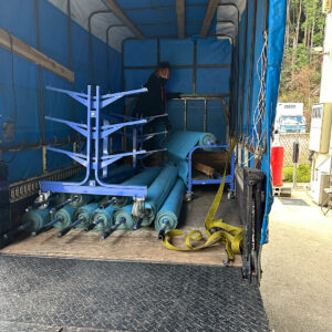 朝は社長とYさんが瀬田へ不足分のフロアマットを取りに行かれてたんやけど、ちょっと数が増えたらしくバラ積みして帰って来られましたわ
