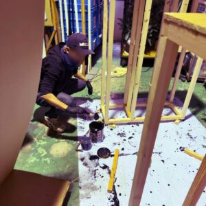 同時にH君は朝一から前回の続きで階段の塗装です。