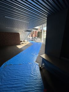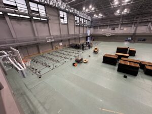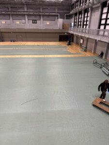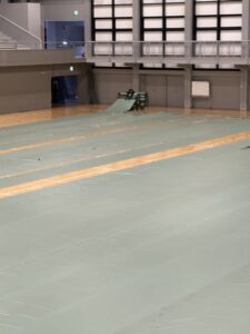 体育館の養生から始まります。