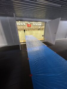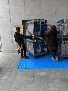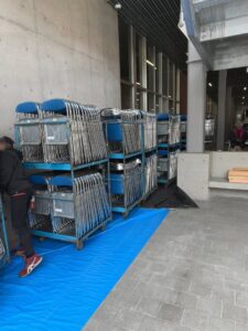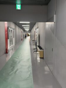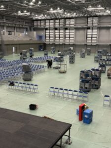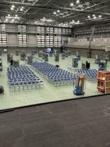 EVから体育館の入口まではブルーシートで養生したそうです。