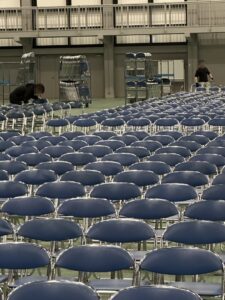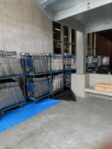 イスも全部搬入出来たんで墨出し、イスのばら撒きまで出来たそうだよ。