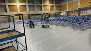 イスは一旦台車に積んで避けておくんだって。