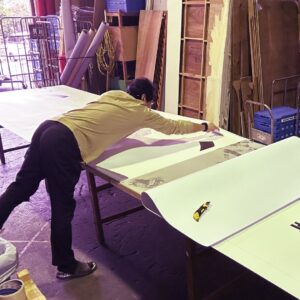 今回は事前に貼って現場で繋ぎだけを貼ったら完成するように仕込んで持っていくんだってよ。