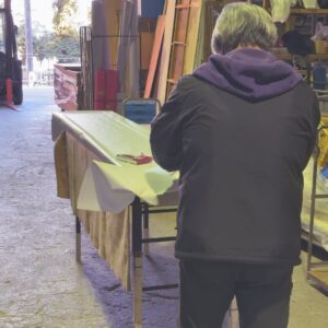 今年追加になって全部で17枚作るんだって。貼れたボードのエアー抜き作業も。