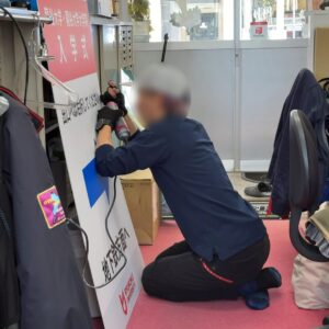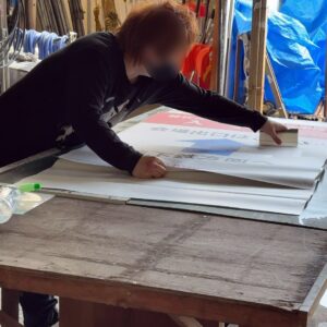 看板が終わって、YさんとH君が2日の大相撲の野洲場所のお仕事の準備を任されてました。