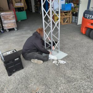 シャトルバスの乗り降り場の設営備品の段取りらしいです。