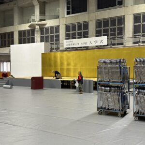 社長ばかりになるけど、それが終わったら京都精華大学様の入学式の撤去に。