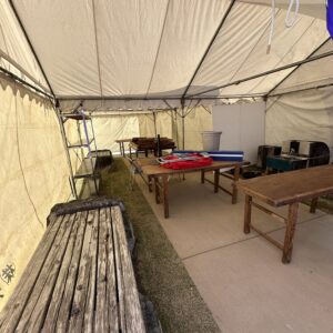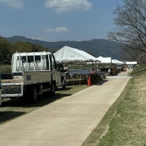 その間、社長とYさんは今日の為に2号車の幌を外したり、京都精華大学様の資材を降ろしたり、YさんとMMさんの2人で白沙村荘様へパーティーのテーブルセッティングに行ったりと慌ただしい動きだったよ。