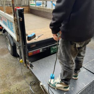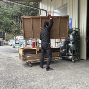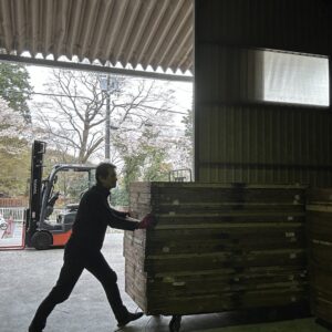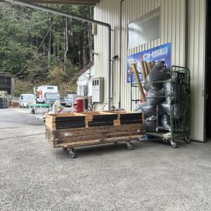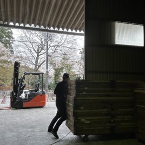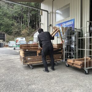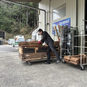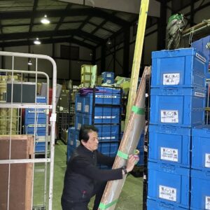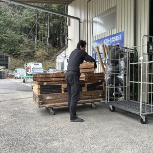社長は戻られてから昨日降ろした資材の片付けを行いだされてた。